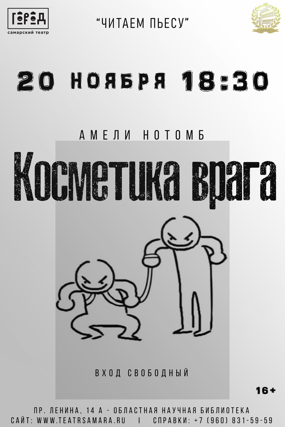 Место: пр. Ленина, 14 А (Областная научная библиотека. Вход в библиотеку и театр со стороны ул. Ново-Садовой)