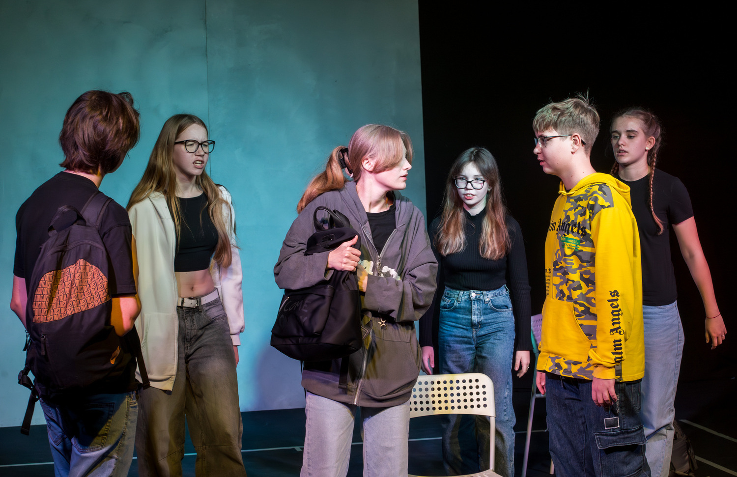 В рамках проекта "Подросткам". В спектакле заняты молодые артисты студии